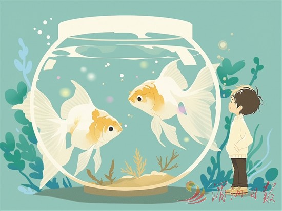 养鱼也有惊险的时刻。有一次,我不小心转动鱼缸,水溢了出来,一条白肚鱼也跟着跳到了地上,拼命挣扎。我手忙脚乱,试了几次都抓不住,最后急中生智,用手拱成“小蚌壳”状,连水带鱼轻轻捧起送回缸中。它回到水里后欢快地游了好几圈,像在感谢我,我也松了一口气,心里满是欣喜。