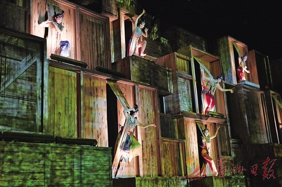10月15日,演员在大型室内情景体验剧《又见敦煌》中表演。近年来,随着敦煌文化的火爆出圈,《又见敦煌》等融合敦煌历史、服饰、乐舞文化的剧目,受到越来越多赴甘肃敦煌旅游游客的喜爱。该剧采用“流线式”空间体验方式演出,让观众身临其境感受敦煌文化和丝路文化。 新华社记者 范培珅 摄