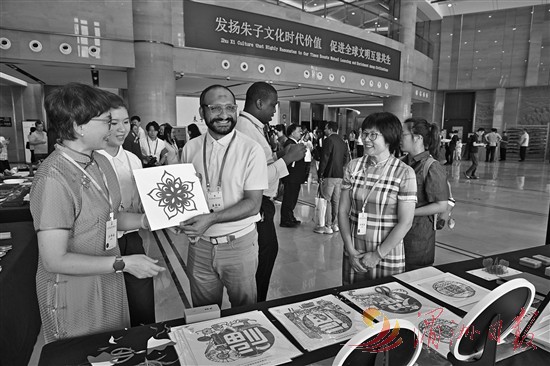 10月18日,“朱子学与全球文明对话大会”与会嘉宾在现场体验福建浦城剪纸技艺。10月18日,由中国社会科学院、国际儒学联合会与福建省人民政府共同主办的“朱子学与全球文明对话大会”在福建省南平市举办。大会以“发扬朱子文化时代价值,促进全球文明互鉴共生”为主题,设置开幕式与主旨报告、第四届考亭论坛平行分论坛、主题圆桌沙龙、“书院文化”学术考察暨采风传播等四大主题活动。 新华社 发