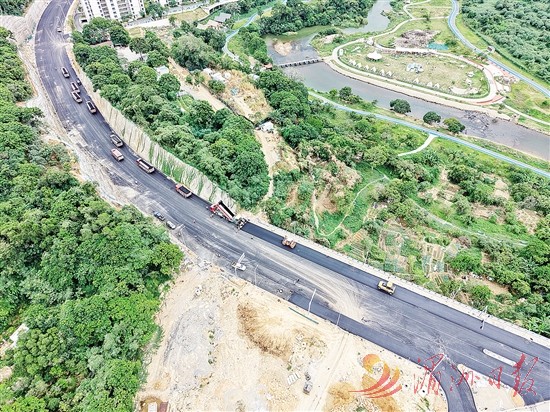本报讯 (全媒体记者 郑已东 文/图)10月25日,泗华郊野公园配套道路项目施工现场,大型摊铺机将滚烫的沥青混合料均匀铺设在路面上,压路机紧随其后,来回碾压。该项目预计本月底试通车,将进一步畅通城市“微循环”,方便常太镇与市区间的交通出行,为郊野公园带来更多人流量。