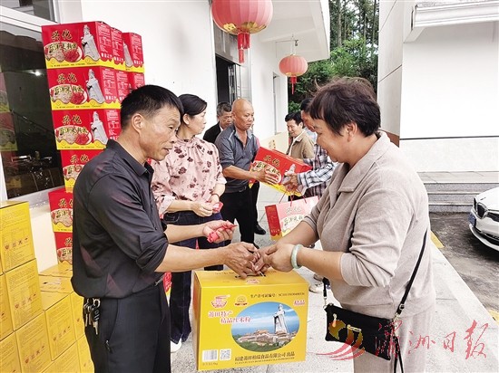 重阳节将至,10月26日,荔城区西天尾镇下垞村爱心企业人士陈文金向村里60岁以上长者捐赠价值近3万元的米粉,送上节日关怀。陈文金已连续3年在重阳节前后为村里老人送温暖。翁国城 摄