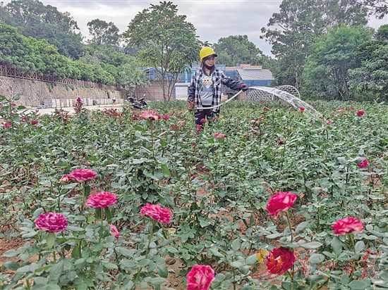 10月24日,记者来到莆阳福道石室岩段看到,植物园一期工程现场一派火热建设景象,工程车往来作业,大型钢架结构已架设完成,部分月季花已栽种,工人正进行浇水养护工作。