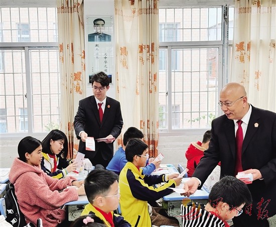 白沙人民法庭结合山区群众实际需求,将司法服务与普法结合,开展“送法进山区”活动。针对青少年法治资源匮乏问题,干警走进大洋学校、新县中心小学,以案例讲解校园反欺凌知识,发放漫画普法材料,播撒法治种子。