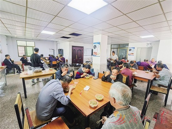 72岁的退休教师颜文福是食堂的“常客”。其老伴和儿子常住市区,独自留守的他曾为做饭犯难:“煮少了不够吃,煮多了浪费,一个人吃饭也冷清。”如今,他每天准时到食堂报到,打完饭,就和邻桌老友畅谈,“不光解决了吃饭难题,还能和老朋友们凑在一起,比家里热闹多了。”老人脸上笑开了花。