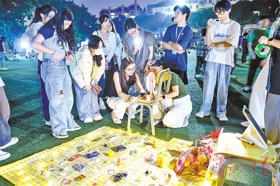 11月8日晚,莆田学院学园校区体育场上,校自律会组织开展潮玩夜市集活动,同学们或现场表演,或出售自己制作的手工等,青春与烟火交织,定格校园鲜活闪光时刻。 蔡昊 摄