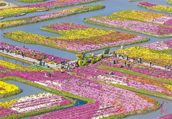 农历九月,又称菊月。“冲天香阵透长安,满城尽带黄金甲。”唐代黄巢用诗描绘九月菊花盛开、满城金黄的美景。各类各色菊花竞相开放,是人们钟爱的秋季景象。如今,菊花产业更成为不少地区乡村振兴和群众致富的重要渠道。图为人们近日在江苏泰州兴化市千垛景区赏菊游玩。 新华社 发