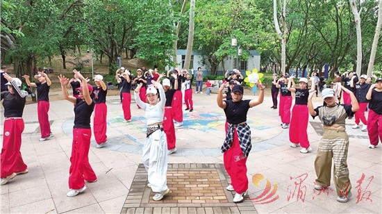 上午9时后,公园换了主角,送完孩子的宝妈们聚集到广场中。音乐声起,宝妈舞蹈队便开始排练(如图)。她们跳起动感舞姿,释放着身体活力。队员刘女士称这里是“充电站”:“暂离‘妈妈’身份,这一小时只为自己而舞。”不远处凉亭里,“人民公园合唱团”正在排练,数十位退休老人紧随着指挥员的节奏,激昂歌唱。一位姓李的阿姨感慨道:“唱的不仅是歌,更是火热生活。”歌声与舞步织就公园动人乐章。