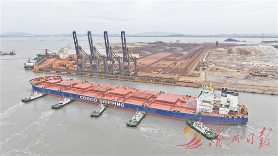 作为东南沿海最大的铁矿石中转枢纽,罗屿作业区已实现超大型矿石船接卸常态化。来自巴西、澳大利亚等国的铁矿资源,经这里中转至长江中下游各省,及日韩、东南亚等国家和地区,串联起内陆腹地与全球市场的贸易纽带,更撑起了两岸铁矿中转的“半壁江山”,为助力打造“亿吨大港”,促进国内国际双循环注入强劲动力。