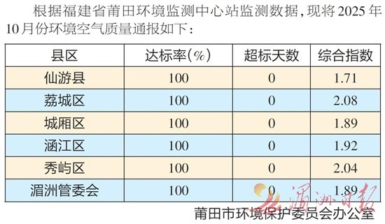 10月份各县区(管委会)环境空气质量情况
