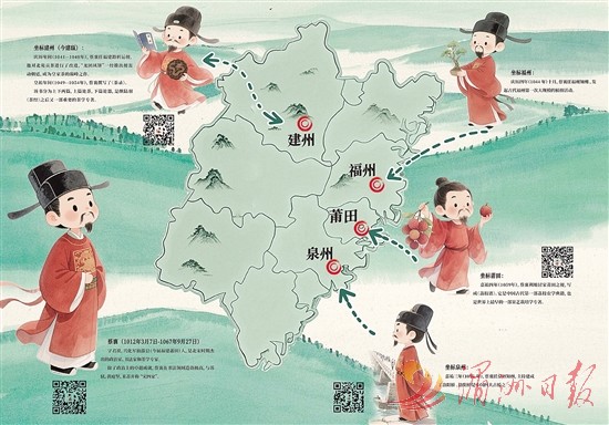 据了解,该项目小组由该校四年级学生组成。这群小文化使者以当代视角重新解读历史,通过设计萌态可掬的“蔡小襄”IP形象、创作《蔡襄与小龙团的千年传奇》绘本、制作“解码洛阳桥黑科技”科普视频、开发蔡襄书法电子壁纸、绘制蔡襄成就地图(如图)等多元形式,让北宋名臣蔡襄穿越千年,以鲜活姿态走进当代生活。