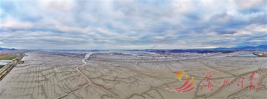 11月28日,在城厢区东海镇近海,潮水退去,广袤的滩涂与天空、远山相映,勾勒出一幅充满生态活力的滨海图景。全媒体记者 杨屹 杨洲 摄