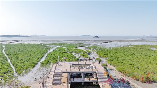 12月5日,在湄洲岛红树林生态公园内,成片的红树林如绿绸铺展海岸。这片潮间带是抵御风暴、缓解侵蚀的天然屏障,也是群鸟栖息繁衍的家园,构成一幅灵动画卷。全媒体记者 陈斌 摄
