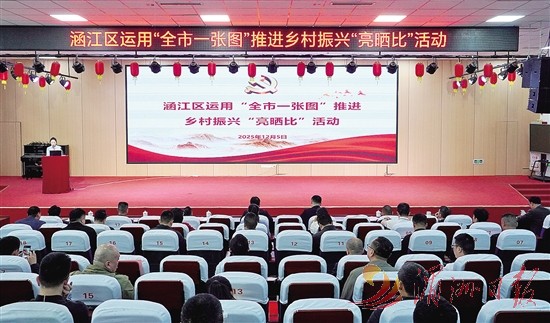 12月5日,在涵江区运用“全市一张图”推进乡村振兴“亮晒比”活动上,9名村党组织书记、挂钩联系服务队队员依次登台,熟练地操作“全市一张图”数字平台。大屏幕上,党建网格、经济数据、民生项目等模块清晰呈现,一个个鲜活的案例随之展开——从庄边镇的林下黄精到哆头村的滩涂蛏田,从“村部尚书”的直播带货到红色公交专线的开通。他们借助数据“晒”出创新举措、“亮”出实际成效、“比”出发展干劲。这场“比武”,正是涵江区打破行政壁垒,以片区化抱团发展推进乡村全面振兴的生动缩影。