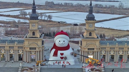 12月15日,哈尔滨市群力音乐公园大雪人完成主体建设,进入到最后的细节打磨阶段。大雪人设计身高19米、长14米、宽11米,总用雪量超过3000立方米,比往年增加1200立方米,为历年之最。