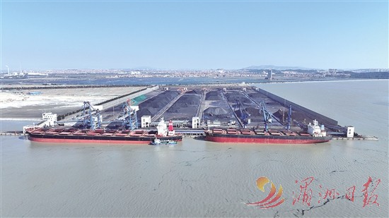 12月5日上午,八方港口码头一派繁忙景象,来自澳大利亚的“魔力”轮和中国籍船舶“潭旭轮”正分别停靠在东1号泊位和东2号泊位进行煤炭卸载作业。