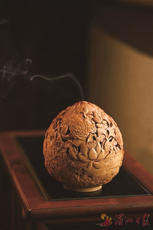 图①:林如常夫妇的作品——黄杨木“繁花”香炉。