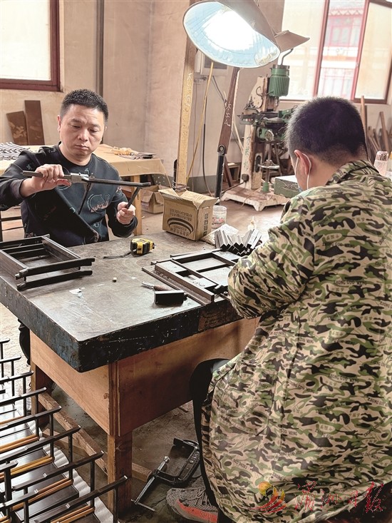 图③:林如常(左一)在工坊里创作。