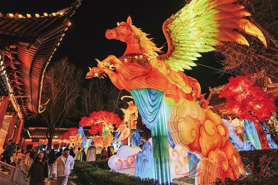 12月30日,市民游客在南京市秦淮区夫子庙大成殿景点参观各种灯彩。2026新年即将到来,南京市秦淮区夫子庙大成殿景点的灯彩灯组陆续点亮,为市民游客献上视觉盛宴。新华社记者 李博 摄