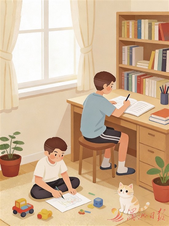 吃完早餐,我准备去书房写作业。只见客厅沙发上的爸爸正神情专注地看书。听见脚步声,他放下书,关切地问:“今天作业难不难?要是卡壳了,爸爸陪你一起想办法。”他的话语像刚温好的水,顺着心口往下淌。