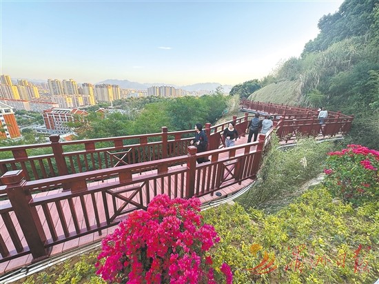 市委八届十次全会对深化公园城市精致城市建设作出部署。仙游县围绕做实城乡建设文章,以城市品质提升行动为契机,对客山妈祖公园进行花化绿化亮化提升。同时,立足山水资源与历史人文,通过小切口、微改造,使公园内的福道不仅摆脱地形限制,又形成独特的高空景观特色,让公园既有“颜值”又有“内涵”,为高标准建设公园城市、精致城市添彩,持续增强市民的获得感与幸福感。