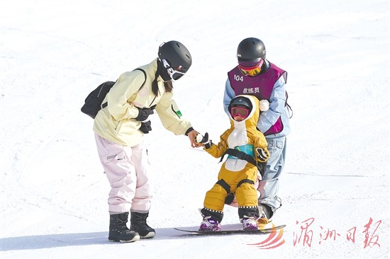 在广武国际滑雪场,一名小朋友在家长和教练的指导下练习滑雪。近年来,地处雁门关外的山西省朔州市山阴县依托地理位置优势和广武长城等历史遗存,积极探索“冰雪+文旅+体育”融合发展路径,使冰雪经济成为县域经济发展的新增长极。位于山阴县广武镇的广武国际滑雪场,于2024年被公布为第三批国家级滑雪旅游度假地,每年接待游客超过10万人次。新华社记者 杨晨光 摄