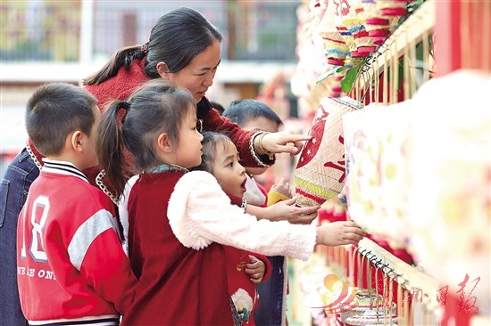 日前,太平小学举行“莆韵童心·灯耀校园”首届灯鼓文化展演。该校以灯为媒、以秀为展,进行一场传统文化与校园美育相融的特色活动。活动现场,上千盏学生手作灯笼分区悬挂、错落有致,作品内容包含锦鲤、妈祖、莆仙戏等非遗内容,凝聚孩子们的奇思妙想。图为师生们参观特色灯鼓展演。吴挺 摄