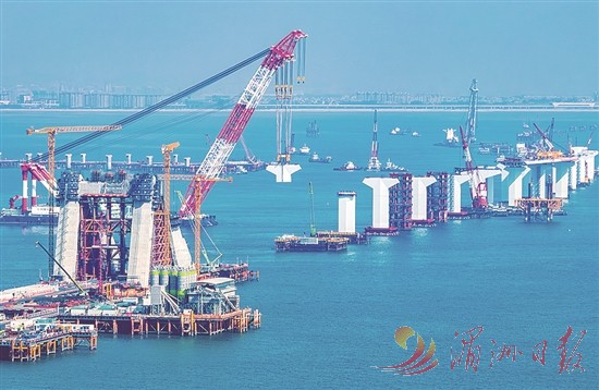 厦金大桥(厦门段)项目A1标段在进行沿线预制墩台吊装。目前,厦金大桥(厦门段)项目跨海工程已从“立塔成型”转入“悬索成桥”关键施工阶段。厦金大桥(厦门段)项目于2023年10月动工,路线全长约19.6公里,其中主线长约17.34公里,翔安支线总长约2.27公里。