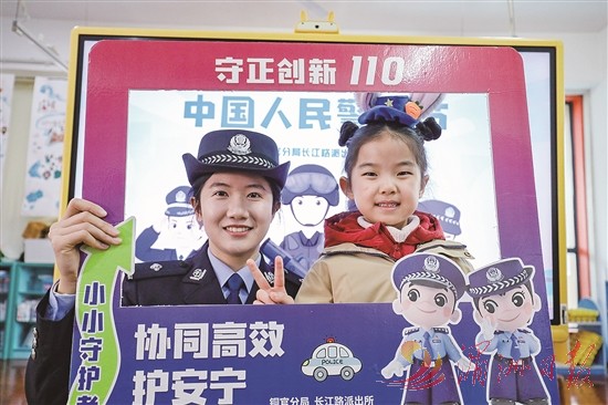 1月9日,安徽省铜陵市公安局铜官分局长江路派出所民警与铜陵市人民幼儿园小朋友互动交流。在第六个中国人民警察节到来之际,各地开展形式多样的警民互动活动,普及警务知识和法律法规常识。 新华社 发