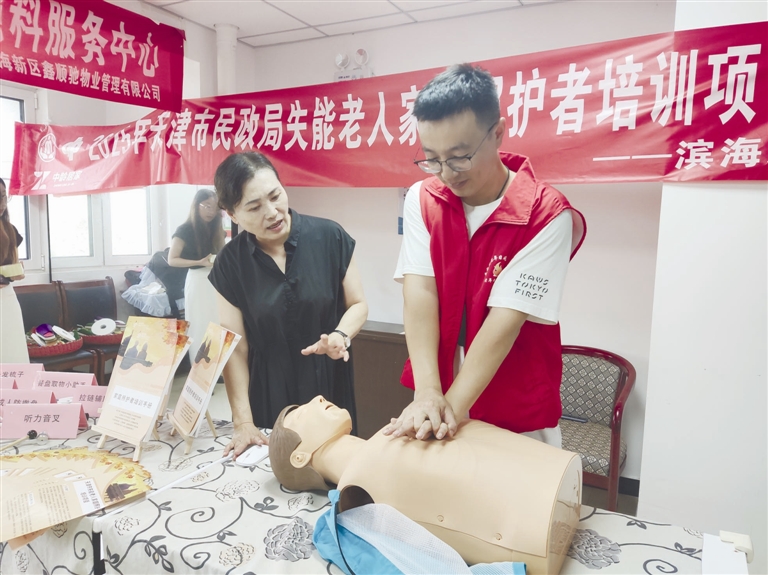 本报讯 (记者刘长海)“在帮助失能老人翻身时,不要用较大力气直接把老人抱起来,要用握手、唤醒等方式评估他的状态,充分发挥老人还存在的机能……”为全面提升居家失能老人家庭照护能力,落实社区民生实事,滨海新区举办失能老人家庭照护培训。8月21日,天津市中龄居家养老促进中心在茶淀街道兰园里社区老年日间照料中心开展失能老人家庭照护者实操培训,为居民送上一份实用且贴心的“知识礼包”。