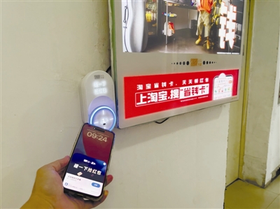 8月21日上午,记者来到刘大爷居住的南开区鼓楼街道铜锣湾花园小区,发现在小区多个楼门的楼道里,安装了“碰一下”设备。这些设备上印有“碰一下 抢红包”字样,以及分众传媒与支付宝的标志。记者使用手机进行测试,在手机解锁状态下,贴近“碰一下”设备,立即弹出了打开支付宝的提示,打开支付宝后,记者领取了2.49元的“碰一下支付红包”。