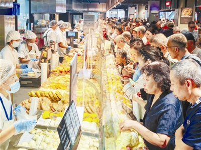 记者在现场看到,门店的熟食和烘焙区设置了多处免费试吃,网红肉蛋堡、麻辣牛肉条、现制烤鸭等产品吸引不少顾客驻足。店内还专门上架了多款天津本地特色商品,如迎宾玫瑰香肠、南开医院定制款月饼、海河乳业与天津博物馆联名的老酸奶等,凸显出“本地化+品质化”的策略。