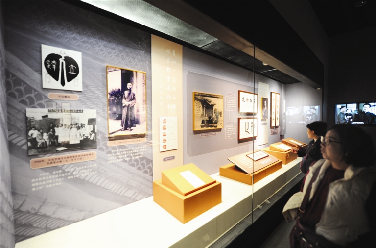 上图 游客观看展品,感受李叔同的思想、情感与人格魅力。 记者 肖怿国 摄