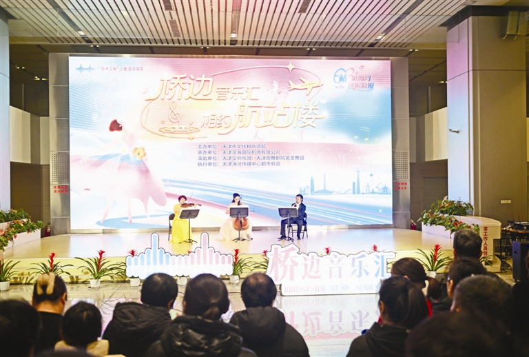 近日,由天津市文化和旅游局、天津滨海机场共同主办的“相约航站楼·桥边音乐汇”主题演出温情启幕。航站楼变身充满艺术气息的城市文化客厅。天津交响乐团、天津歌舞剧院芭蕾舞团实力加盟,为往来旅客与市民带来一场高品质的艺术视听盛宴。 记者 史 嵩摄