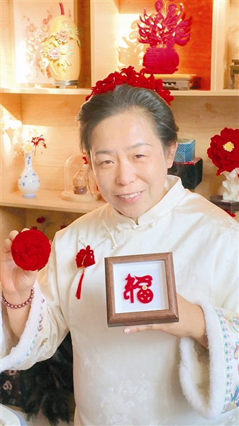 “小寒大寒,准备过年。津门宫花为您准备好了过年的红绒花,赶紧把这份荣华和祝福带回家吧。”在自己的直播间里,果兆静左手拿着一朵传统的聚宝盆绒花,右手拿着专为马年设计的团圆绒花,依次向网友们介绍不同造型的红绒花都有什么不同的吉祥寓意——这是元旦后,这位武清区曹子里镇区级非遗传承人的日常,她的代表性项目是“静花缘绒花制作技艺”。