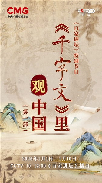 更多精彩内容,敬请收看CCTV-10《百家讲坛》即日起至1月10日每天12:00播出的系列节目《〈千字文〉里观中国》(第一部)。