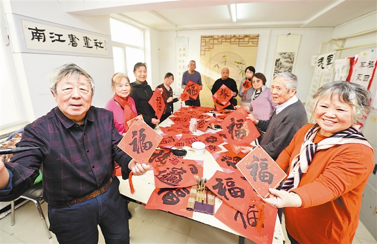 活动现场,大红福字纸铺满案头,书法爱好者们凝神挥毫,笔锋流转间,一个个遒劲有力的“福”字跃然纸上。这支特殊的书写队伍里,年龄最长者83岁,最年轻的也已65岁,他们用布满皱纹的双手,将对新年的期许与邻里的温情倾注笔端。社区书画社坚持二十余年义务送福,每一笔每一划都饱含心意,累计送出的福字早已串起千家万户的情谊。