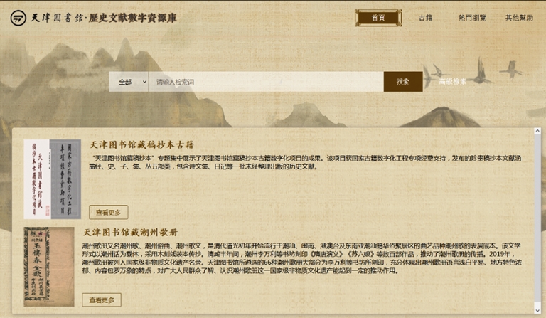 | 新版“天津图书馆历史文献数据库” |