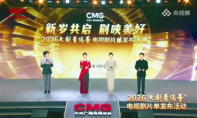 1月9日上午,新岁共启、剧映美好——中央广播电视总台2026“大剧看总台”电视剧片单发布活动在北京举行。活动中公布了即将于2026年登陆央视总台的电视剧名单和央视总台目前重点关注并予以指导的、正在拍摄制作中的年度重点剧目。它们既代表了近年剧集创作的最新成果,也反映了当下电视剧创作生产领域新的发展趋势与未来走向,为广大剧迷们提供了“收视手册”。