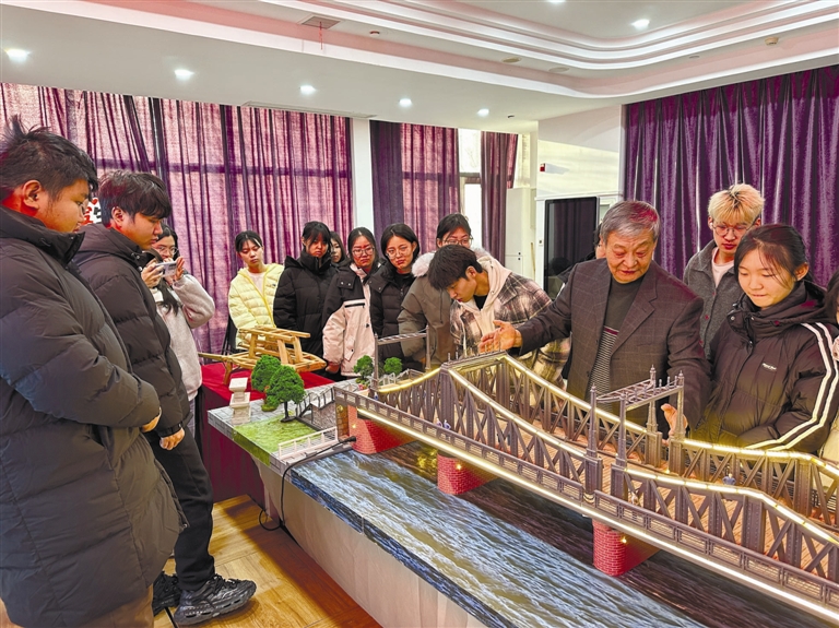 河北区杜氏手工木艺技艺传承人杜铁林带来亲手制作的“金汤桥”木艺模型,并围绕它讲述了平津战役中解放军在金汤桥胜利会师的历史。他说:“希望通过模型,让历史不仅能听,还能‘触摸’。”