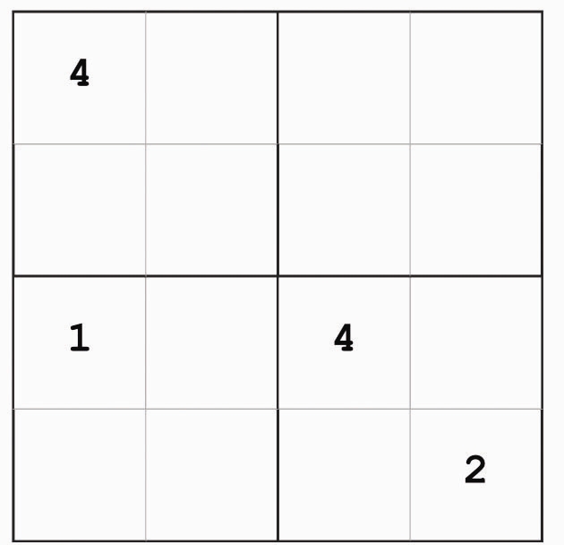 游戏规则:在空格内填入数字1至4,使得每行、每列和每宫内数字都不重复。