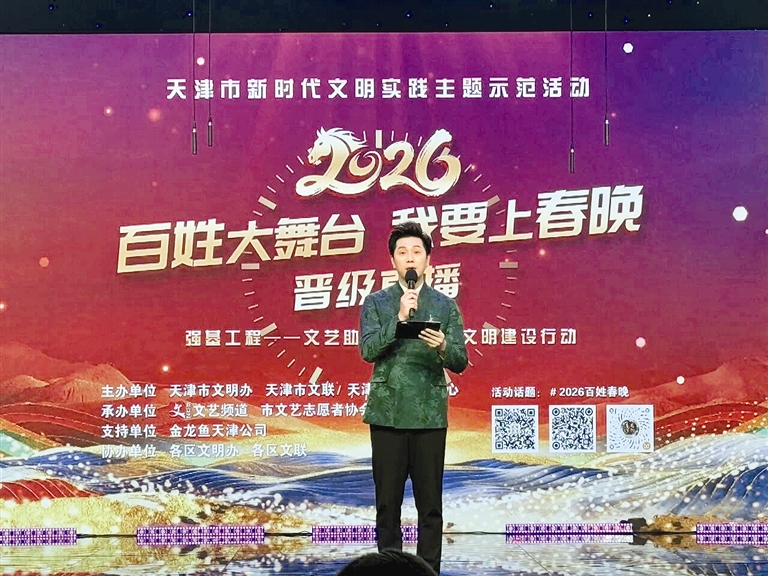 日前,由天津市文明办、市文联、海河传媒中心联合打造的“百姓大舞台,我要上春晚——2026百姓春晚”晋级直播,在天津海河传媒中心800演播大厅圆满落幕。