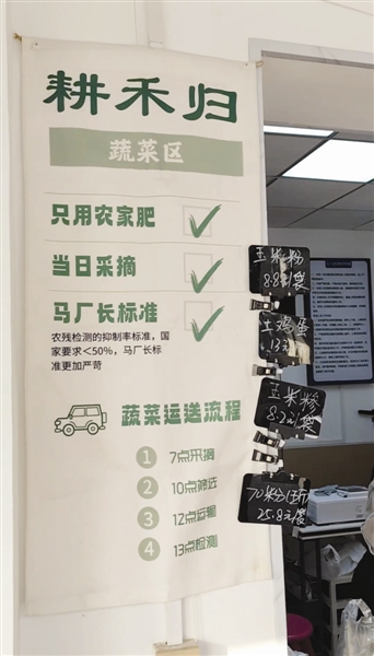 “最起码人家有检测,咱心里踏实点。”一位在“马厂长菜园”里买菜的顾客表示。“马厂长菜园”的检测并非形式主义——店铺自购了农残分析仪,店内蔬菜农残比国家标准低50%。不仅如此,店铺坚持上午采摘,中午运输,下午销售,这种短链供销模式,让顾客能够直观感受到食材的新鲜。这种与以往超市中长途运输、多日储存的蔬菜供销模式形成鲜明对比。