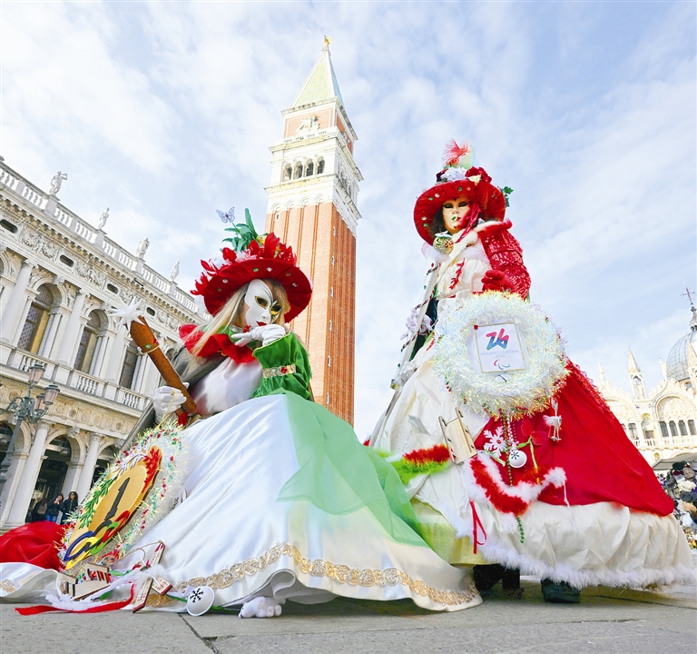 意大利威尼斯狂欢节于1月31日至2月17日举行。威尼斯狂欢节是世界上历史最久、规模最大的狂欢节之一,以面具文化和华丽服饰著称。 (新华社发)