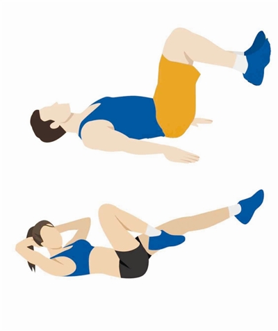 仰卧抬腿(如图) 仰卧,双腿屈膝上抬,脚尖向上,每次保持5至10秒,每组10次,每天2组。该动作让腿部高于心脏,有助于血液回流。