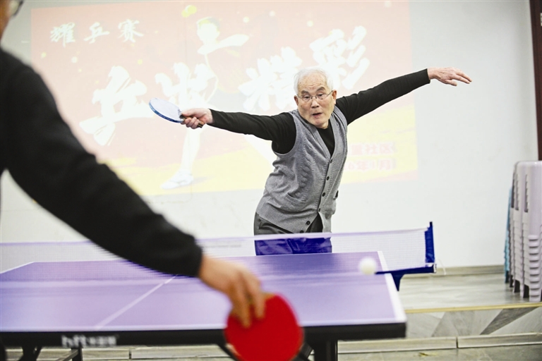 比赛现场气氛热烈,乒乓球在空中来回飞舞,参赛选手们精神饱满、各展所长。直拍横打、精准扣杀、巧妙防守,一招一式专业利落,精彩的对决引得现场掌声、喝彩声不断。大家在竞技中交流技巧,在互动中增进情谊,赛场内外洋溢着团结和谐的浓浓暖意。62岁的张大爷打完球擦着汗笑着说:“活动活动筋骨,一年都有劲儿!”朴实的话语道出了居民们的共同心声。