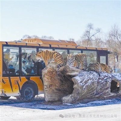 春节假期,黑龙江省哈尔滨市东北虎林园迎来大批游客。记者乘坐观光车入园探访。目前,该园区生活着300多只不同年龄的东北虎,其中有几十只生活在散放区。园区设有13处投喂点,供游客投喂互动。