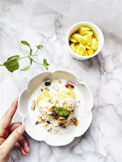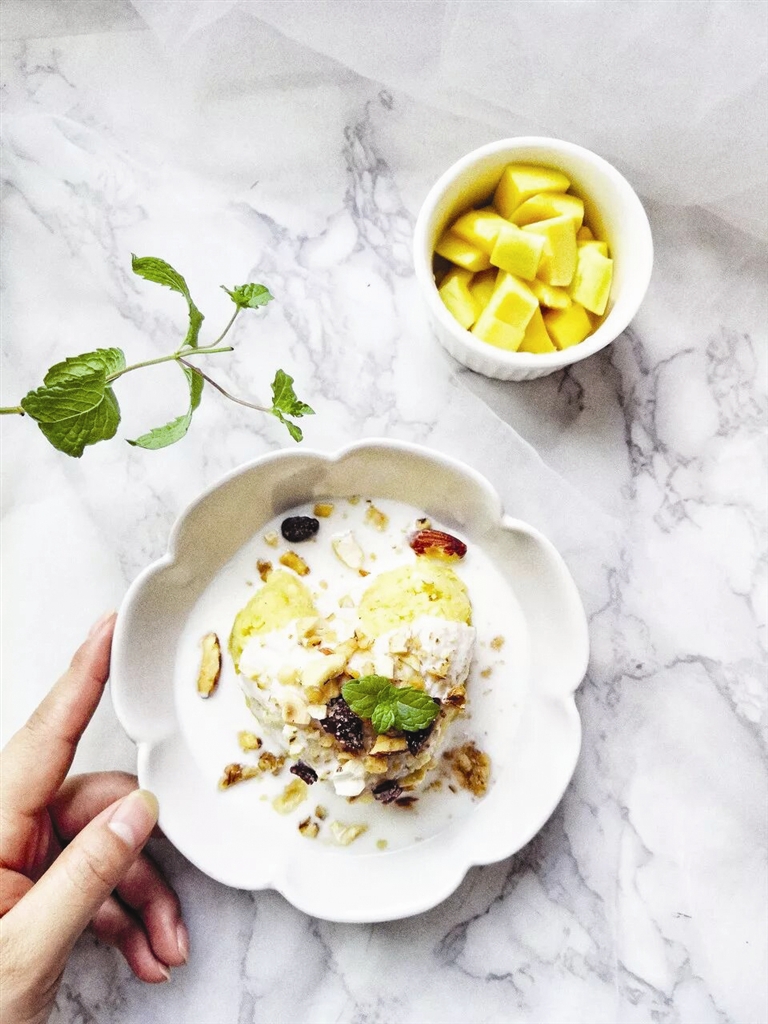 红薯热量低、饱腹感强,无论是作为主食还是副食,都是不错的减脂食物。酸奶爽口解腻,也是一道非常适合节日狂欢后食用的清爽美食。