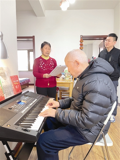 走进87岁北京老人程光泉在武清区养老护理中心的“家”,记者看到,客厅的一角,老人正专注地弹奏着电子琴,老伴儿王秀英站在一旁放声歌唱。