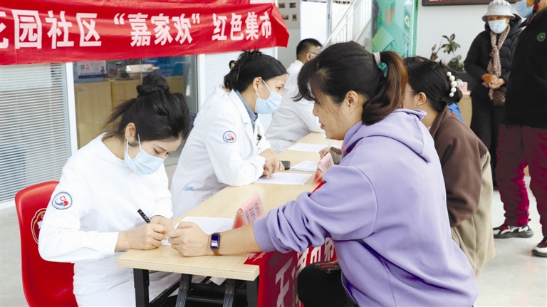 日前,北辰区小淀镇嘉阳花园社区新时代文明实践站开启春节后首场便民服务日活动,以“嘉家欢·红色集市”为载体,将专业医疗志愿服务送到居民家门口。