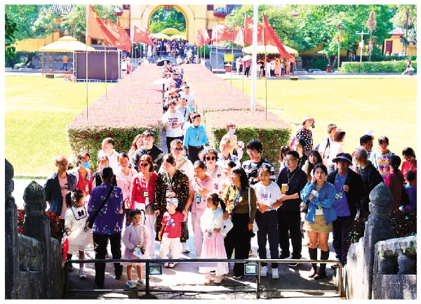 ▲10月3日,王城景区内游人如织。假日里众多出游的家长带着孩子在游山水的同时,感受桂林深厚的文化底蕴。 记者李凯 摄